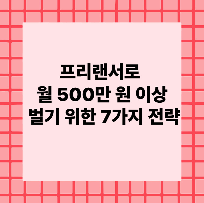 이 글에서 소개한 7가지 전략을 통해 프리랜서로서 월 500만 원 이상을 목표로 한 성공적인 커리어를 구축해보세요. 지속적인 노력과 전략적 접근이 결국 성공적인 결과를 만들어낼 것입니다.